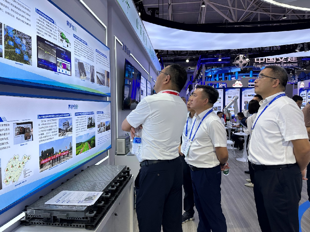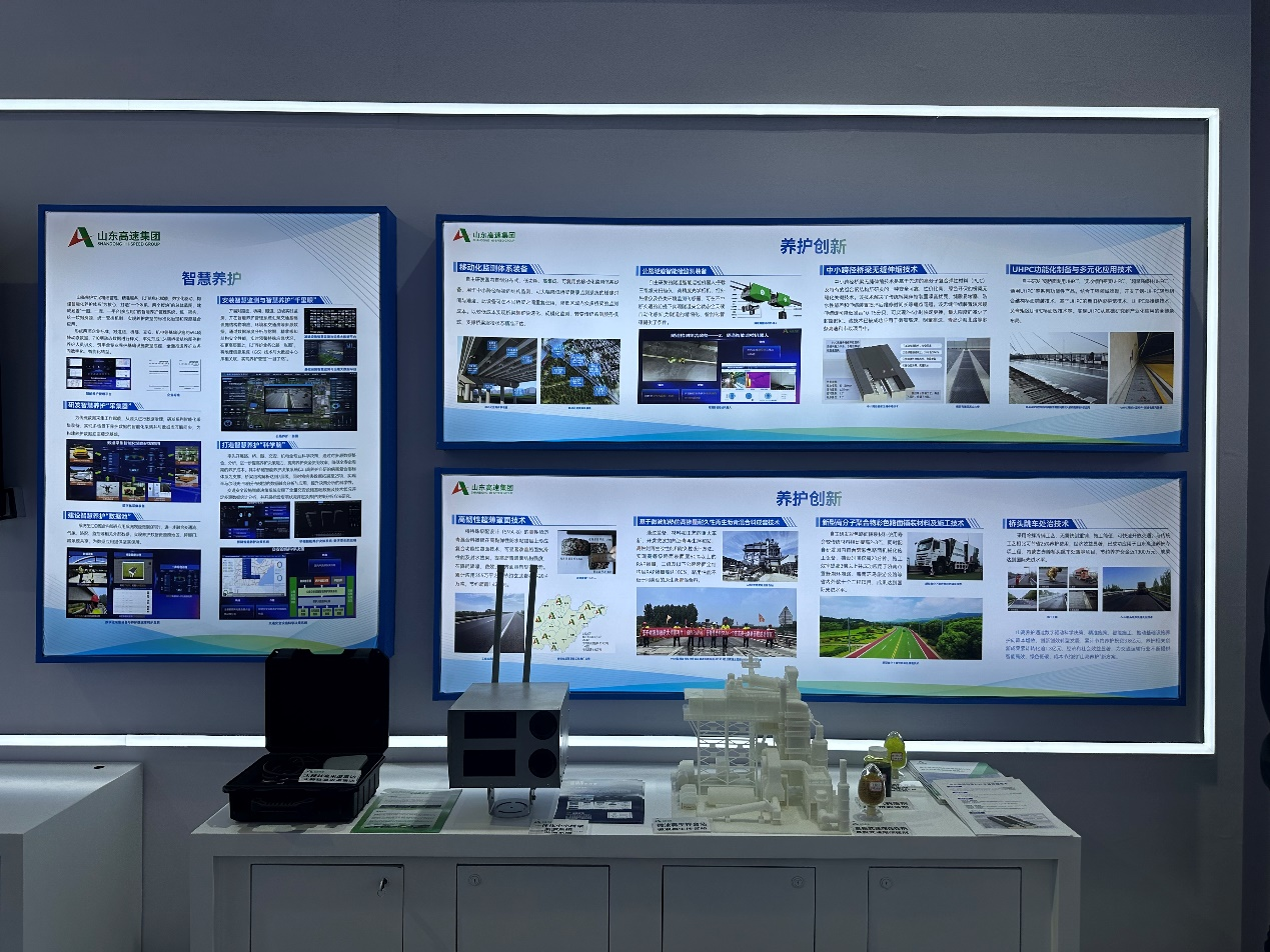 大會期間,公司在山東高速集團“智慧養(yǎng)護”板塊分別展示了山東高速基礎(chǔ)設(shè)施智慧監(jiān)測與運維大數(shù)據(jù)平臺、移動化監(jiān)測體系裝備、隧道智能巡檢機器人、UHPC成套制備及應(yīng)用技術(shù)、基于微波加熱的高摻量耐久性再生瀝青混合料成套技術(shù)、中小跨徑橋梁PUC材料無縫伸縮縫技術(shù)等先進四新技術(shù)成果,吸引了相關(guān)領(lǐng)導(dǎo)、學(xué)者以及展商的駐足詢問,公司科研人員圍繞技術(shù)特點、產(chǎn)品參數(shù)、應(yīng)用場景和效果進行了詳細介紹,受到了與會人員的一致好評和高度贊賞。