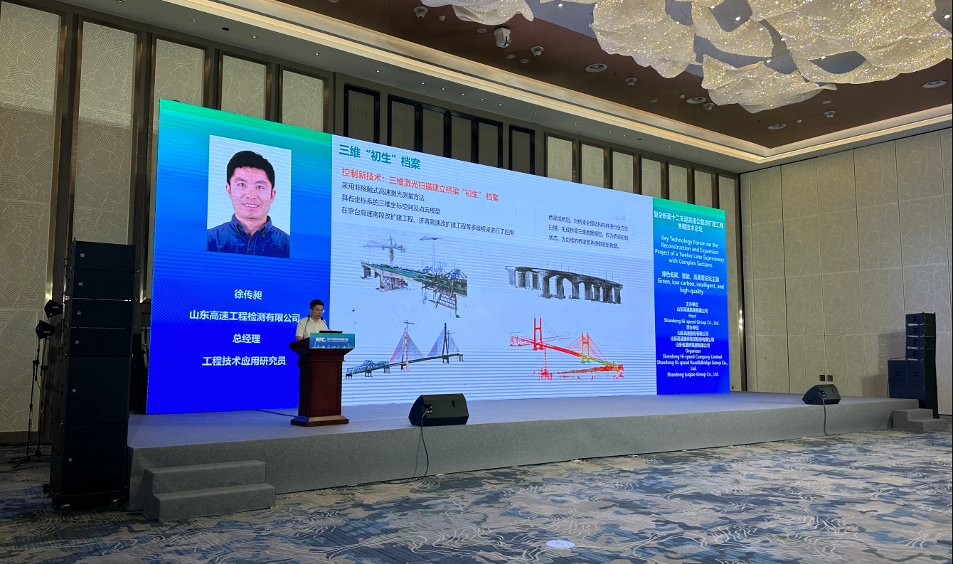 權(quán)屬單位山高檢測公司總經(jīng)理徐傳昶在“復(fù)雜斷面十二車道高速公路改擴建工程論壇”,做了《檢監(jiān)測技術(shù)賦能改擴建工程建設(shè)》專題匯報。